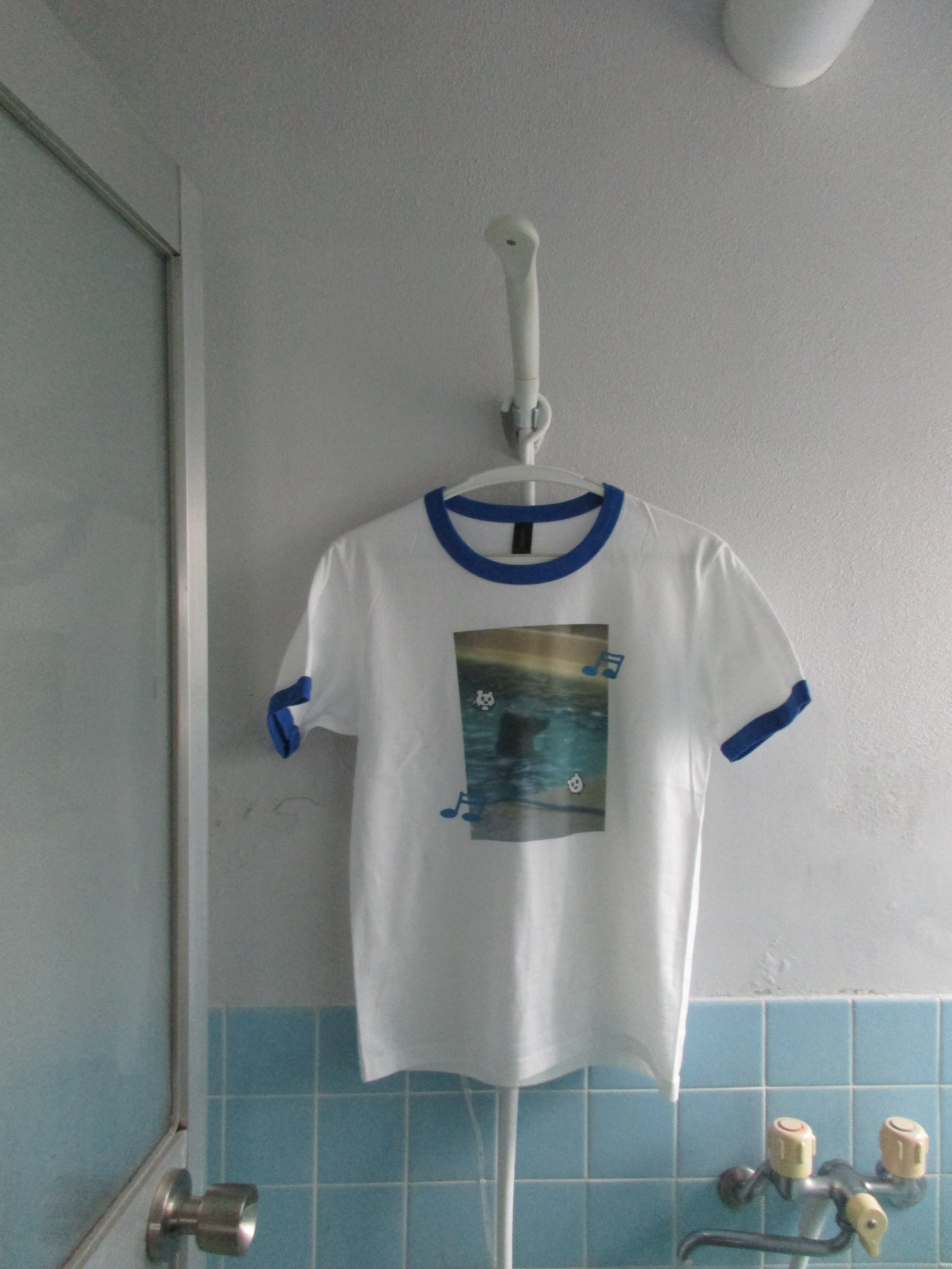 デジカメで撮影したアザラシの写真を後から確認するとハムスターの写り込みがあったので、記念にTシャツにしました。